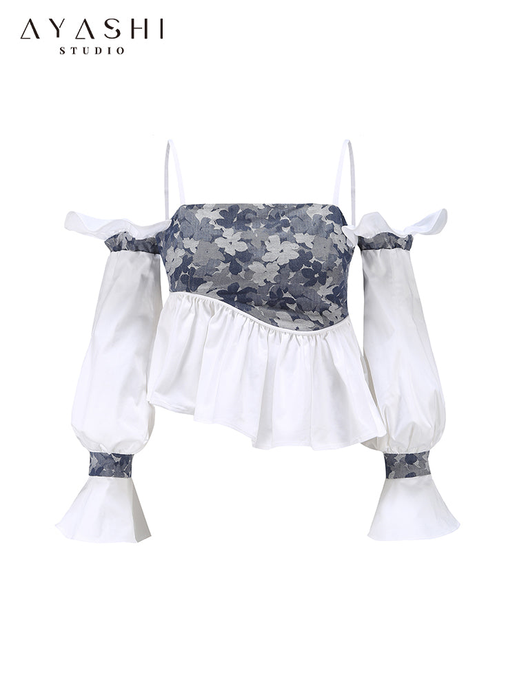 Blue and White Patchwork Design Sling Top