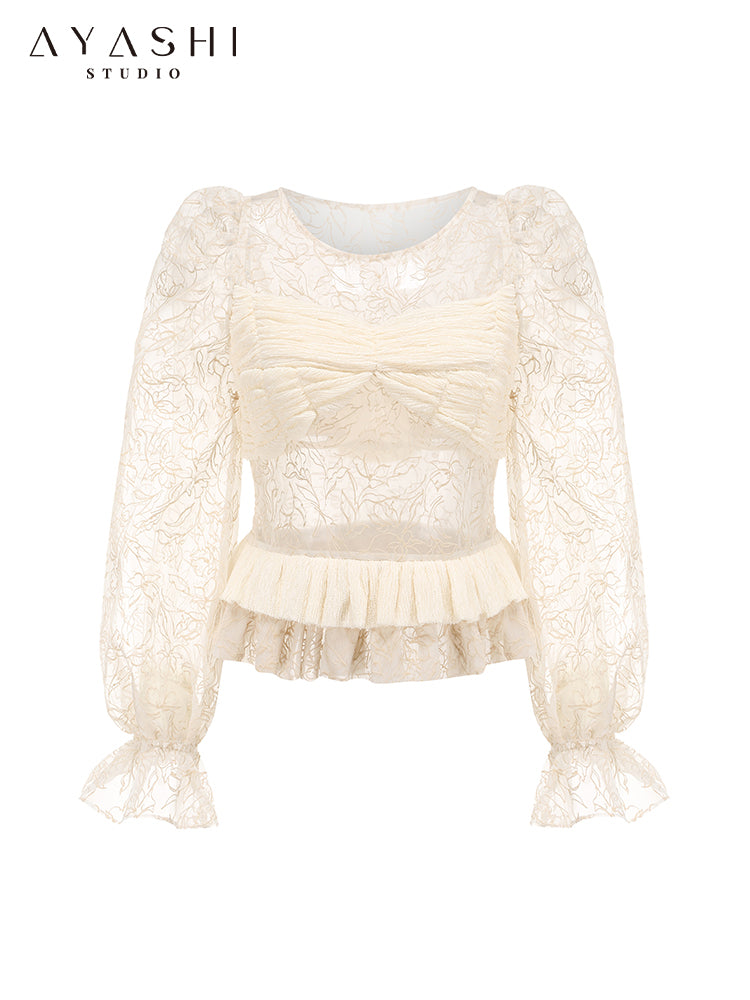 Cream Flocked Puff Sleeve Top