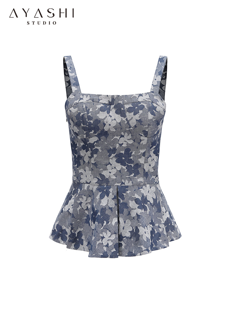Blue Floral Jacquard Top
